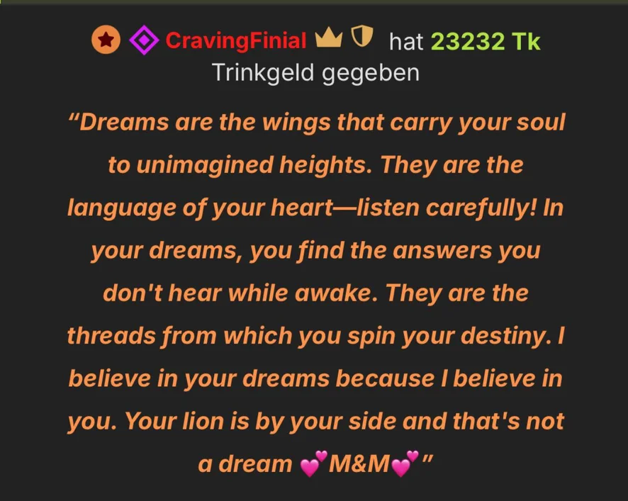 𝐘𝐨𝐮’𝐫𝐞 𝐧𝐨𝐭 𝐣𝐮𝐬𝐭 𝐚 𝐬𝐮𝐩𝐩𝐨𝐫𝐭𝐞𝐫, 𝐲𝐨𝐮’𝐫𝐞 𝐦𝐲 𝐥𝐢𝐨𝐧 – 𝐭𝐡𝐞 𝐨𝐧𝐞 𝐰𝐡𝐨 𝐬𝐡𝐨𝐰𝐬 𝐦𝐞 𝐭𝐡𝐚𝐭 𝐛𝐞𝐢𝐧𝐠 𝐭𝐡𝐞𝐫𝐞 𝐟𝐨𝐫 𝐞𝐚𝐜𝐡 𝐨𝐭𝐡𝐞𝐫 𝐢𝐬 𝐰𝐡𝐚𝐭 𝐭𝐫𝐮𝐥𝐲 𝐦𝐚𝐭𝐭𝐞𝐫𝐬. 𝐘𝐨𝐮𝐫 𝐰𝐨𝐫𝐝𝐬, 𝐲𝐨𝐮𝐫 𝐞𝐧𝐞𝐫𝐠𝐲, 𝐲𝐨𝐮𝐫 𝐬𝐮𝐩𝐩𝐨𝐫𝐭 – 𝐭𝐡𝐞𝐲 𝐦𝐞𝐚𝐧 𝐞𝐯𝐞𝐫𝐲𝐭𝐡𝐢𝐧𝐠 𝐭𝐨 𝐦𝐞. 𝐘𝐨𝐮 𝐦𝐚𝐤𝐞 𝐦𝐞 𝐟𝐞𝐞𝐥 𝐬𝐨 𝐬𝐞𝐞𝐧, 𝐬𝐨 𝐡𝐞𝐚𝐫𝐝, 𝐚𝐧𝐝 𝐬𝐨 𝐥𝐨𝐯𝐞𝐝. 𝐈’𝐦 𝐛𝐞𝐲𝐨𝐧𝐝 𝐠𝐫𝐚𝐭𝐞𝐟𝐮𝐥 𝐭𝐨 𝐡𝐚𝐯𝐞 𝐲𝐨𝐮 𝐢𝐧 𝐦𝐲 𝐥𝐢𝐟𝐞, 𝐧𝐨𝐭 𝐣𝐮𝐬𝐭 𝐢𝐧 𝐭𝐡𝐞 𝐬𝐭𝐫𝐞𝐚𝐦, 𝐛𝐮𝐭 𝐢𝐧 𝐦𝐲 𝐡𝐞𝐚𝐫𝐭. 𝐓𝐡𝐚𝐧𝐤 𝐲𝐨𝐮 𝐟𝐨𝐫 𝐛𝐞𝐢𝐧𝐠 𝐦𝐲 𝐫𝐨𝐜𝐤, 𝐦𝐲 𝐥𝐢𝐨𝐧, 𝐚𝐧𝐝 𝐦𝐲 𝐡𝐞𝐫𝐨. 𝐘𝐨𝐮’𝐫𝐞 𝐬𝐢𝐦𝐩𝐥𝐲 𝐚𝐦𝐚𝐳𝐢𝐧𝐠. 𝐓𝐡𝐚𝐧𝐤 𝐲𝐨𝐮, 𝐟𝐫𝐨𝐦 𝐭𝐡𝐞 𝐛𝐨𝐭𝐭𝐨𝐦 𝐨𝐟 𝐦𝐲 𝐡𝐞𝐚𝐫𝐭.💕
