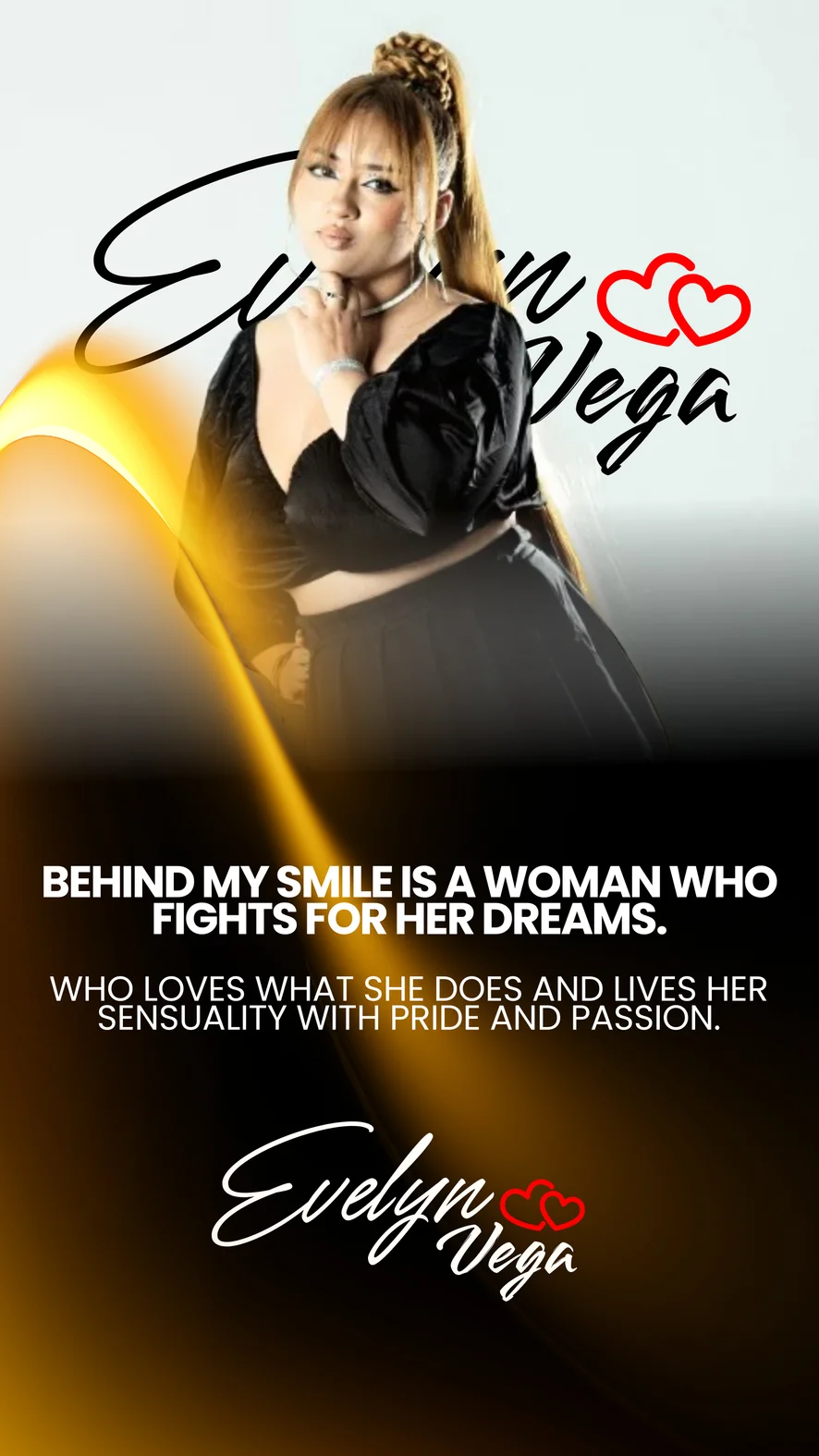Detrás de mi sonrisa hay una mujer que lucha por sus sueños, que ama lo que hace y vive su sensualidad con orgullo y pasión.