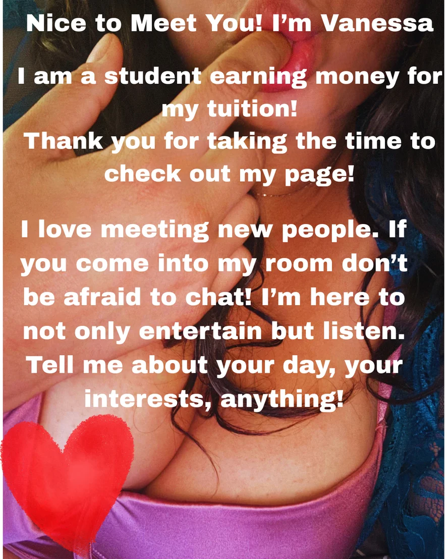 hi I'm Vanessa! thank you for looking at my page! Come hang out with me as I earn tuition for school