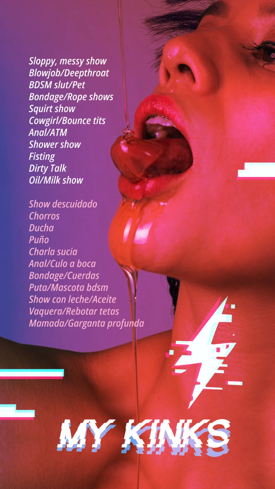 Ahegao, Doggy Style, Spanking, Erotic Dance, Camel Toe, Fingering, Striptease, Flashing, Foot Fetish, Heels, Gagging, Upskirt, Topless, Cock Rating, Creampie, Leather, Dildo or Vibrator, Shower, Smoking, Latex, Blowjob, Masturbation, Tittyfuck, Nylon, Orgasm, Oil Show, Cowgirl, Sex Toys, Facial, Anal, Strapon, Ass to Mouth, Dirty Talk, Double Penetration, Fisting, Deepthroat, Humiliation, Anal Toys, Nipple Toys, Hardcore, Squirt, Gape, Pegging